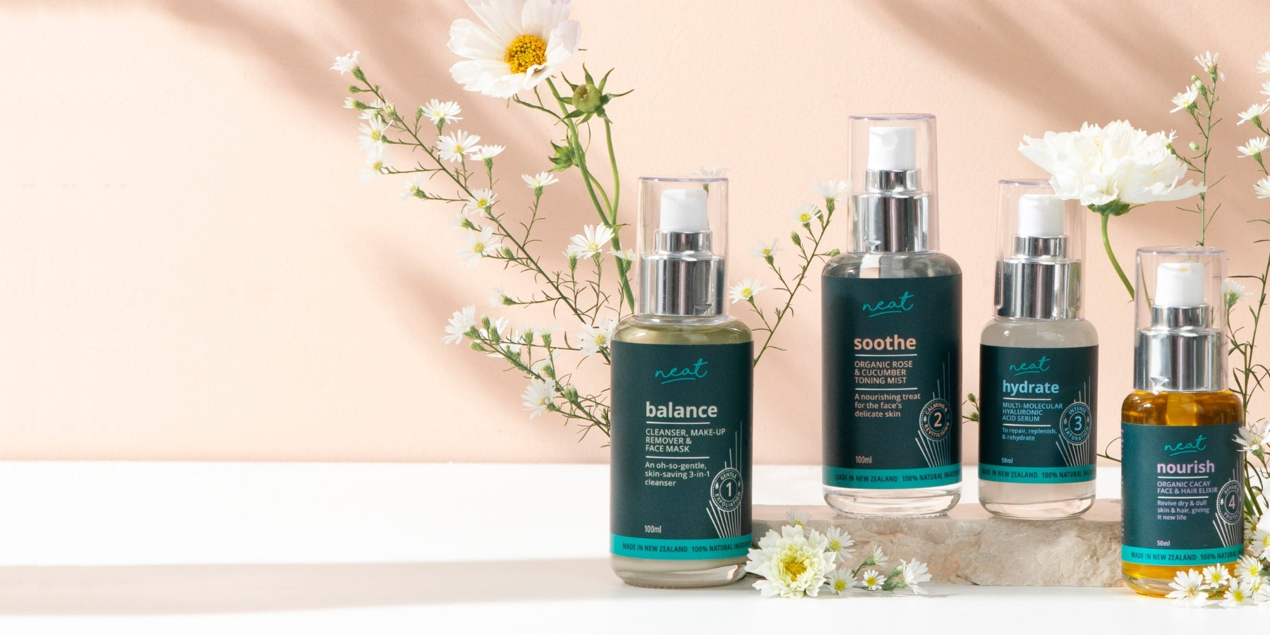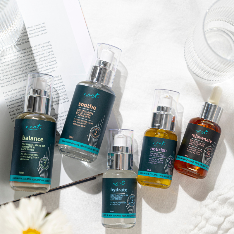 I am 50, and I have always had terribly dry skin on my face. I've tried so many different products and ranges but they would either not work or were just too expensive for me to continue buying. Until, I tried Neat earlier this year. I started with this mini set and I couldn't believe how good my skin looked and felt straight away. It was so quick and easy to use and I was hooked!! I then bought the bigger bottles in all 4 products as well as the night oil. This new mini set i have just bought is for travelling. My skin is no longer dry and apparently I look younger.