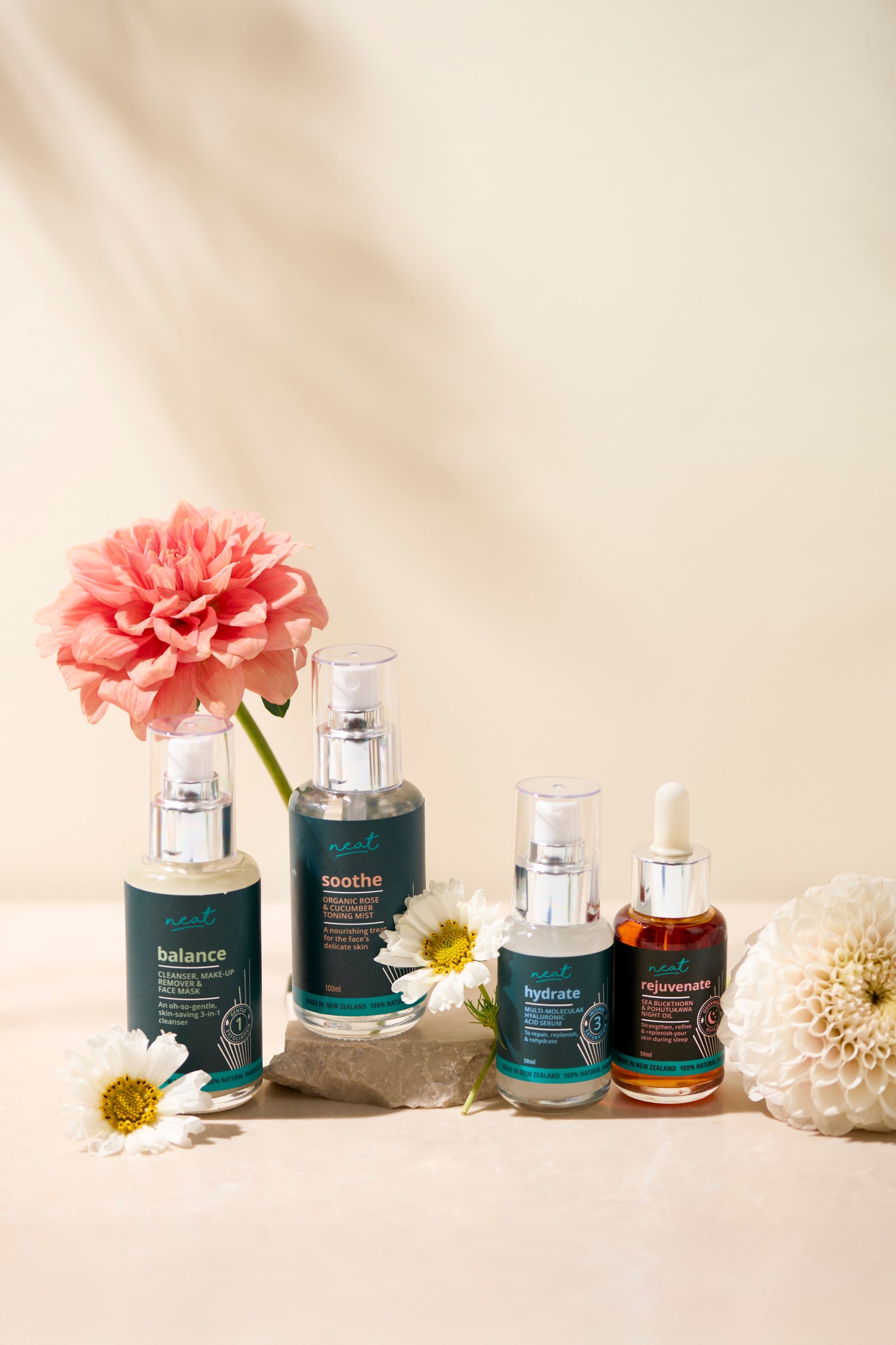 Sensitive skin club? We got you covered. Made with 100% natural ingredients, these skincare warriors will delicately cleanse, tone, and hydrate your skin. Get your glow on without risking irritation!