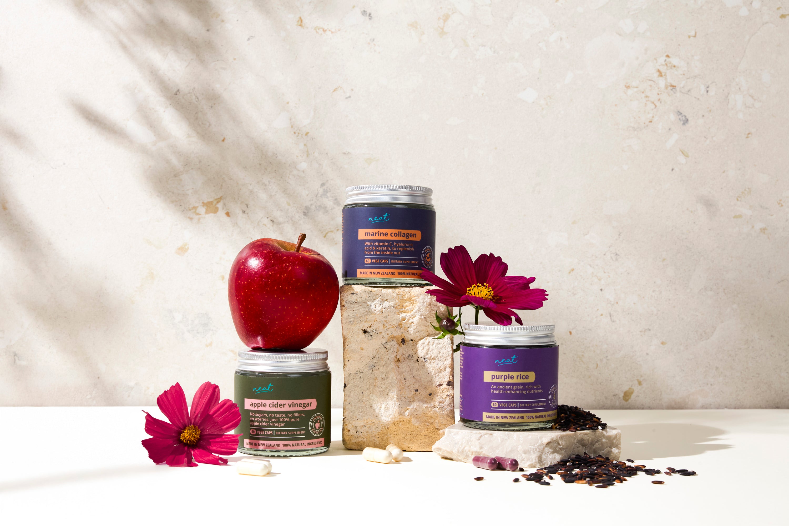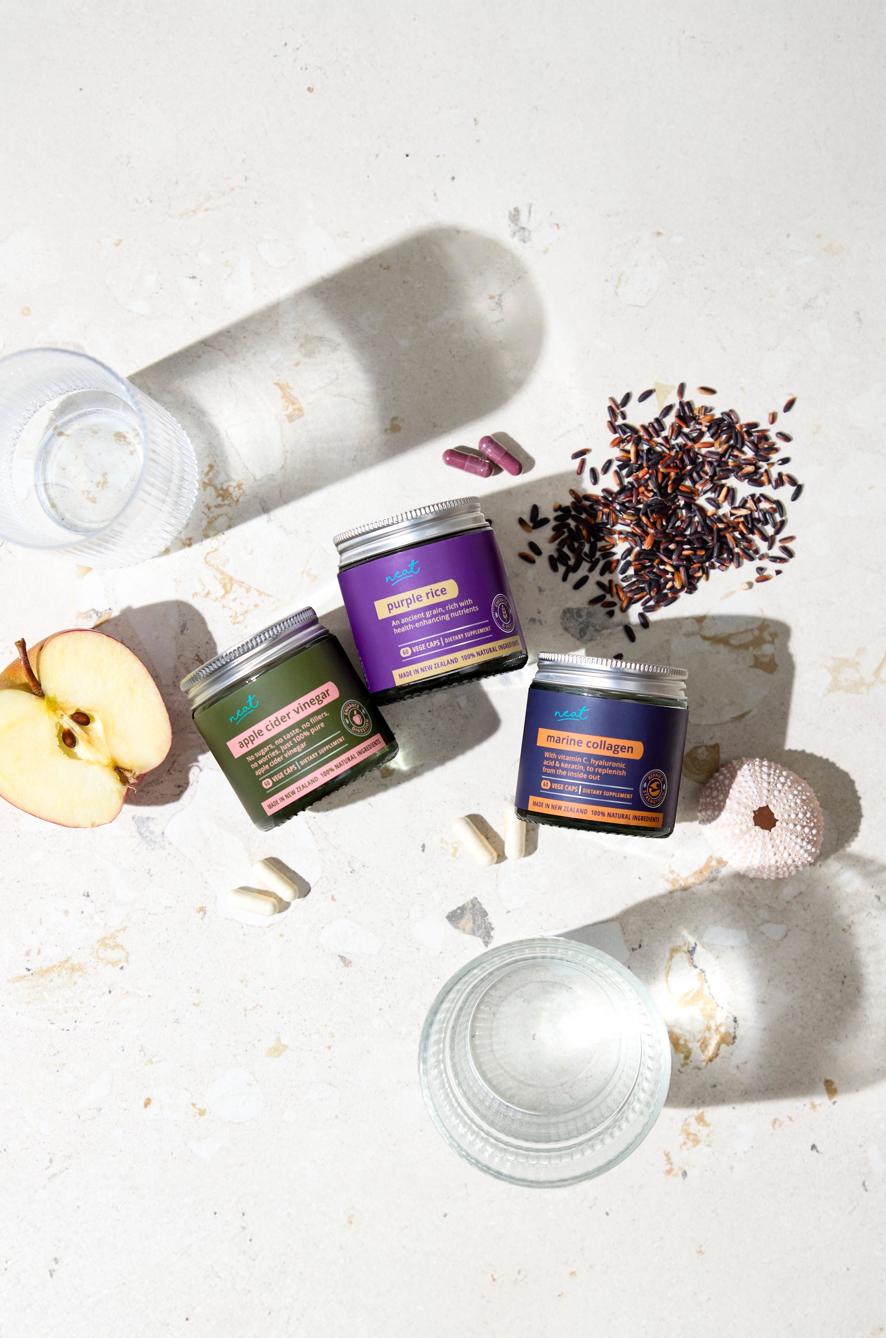 Neat Supplements Trio | Marine Collagen, Keratin & Hyaluronic Acid - Apple Cider Vinegar - Purple Rice Antioxidant
