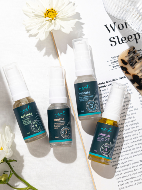 The routine is designed to balance all skin types — dry, aging, acne-prone, oily, and sensitive.